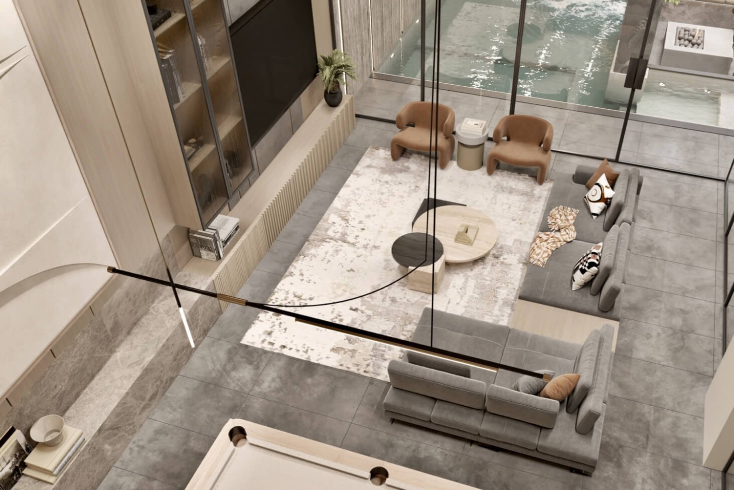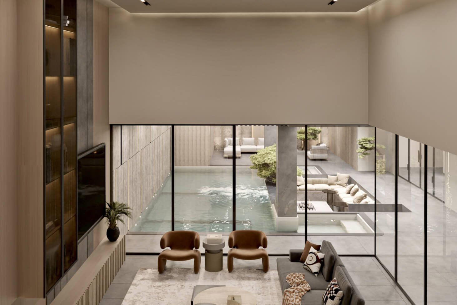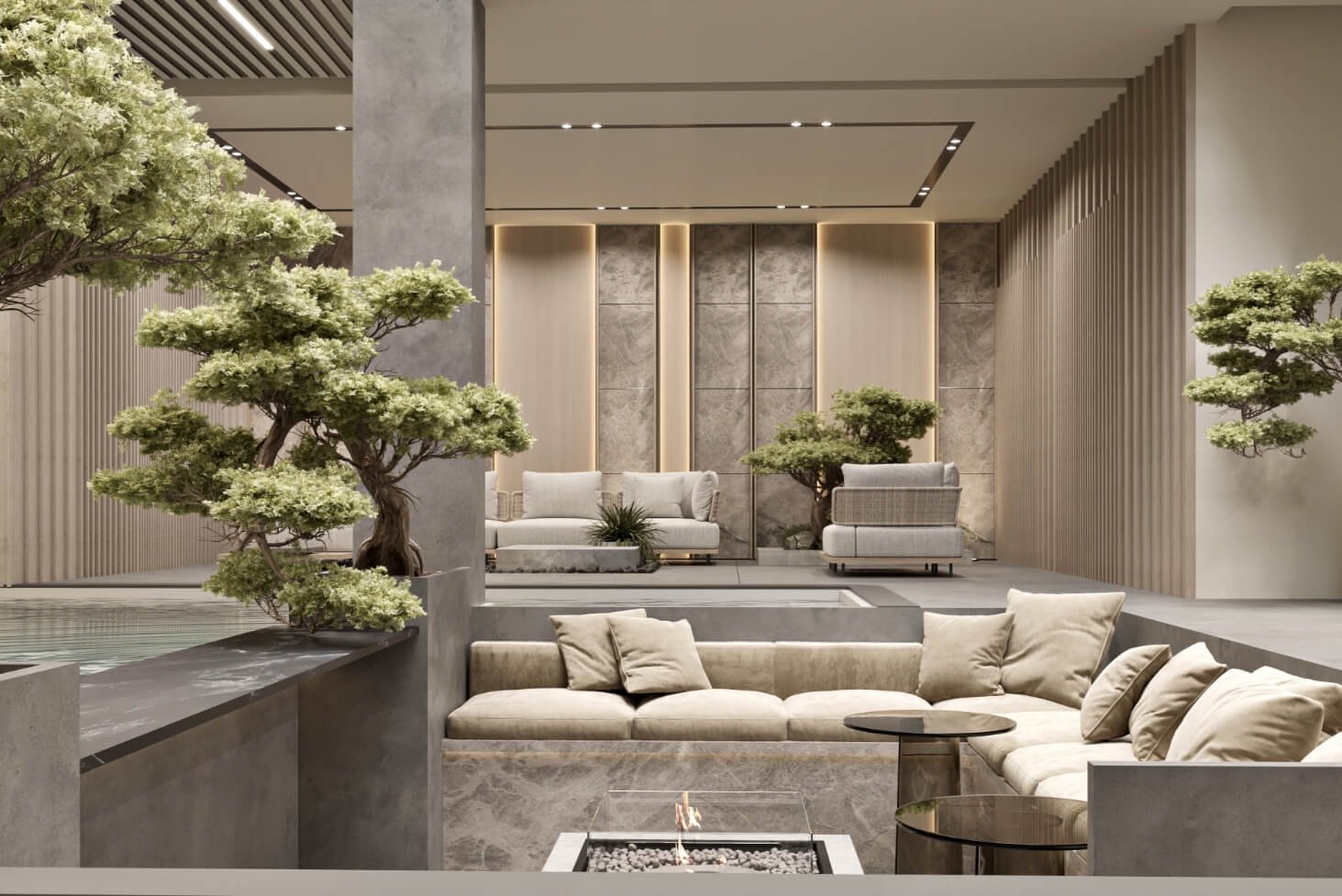 The design intent behind IT Villa was to create a home that celebrated family gatherings and quality time. And from the intent rose the idea of providing open spaces for multipurpose activities. By incorporating different notural elements like wood, stone and trees, oll the spaces become inviting and colming ot the some time.
